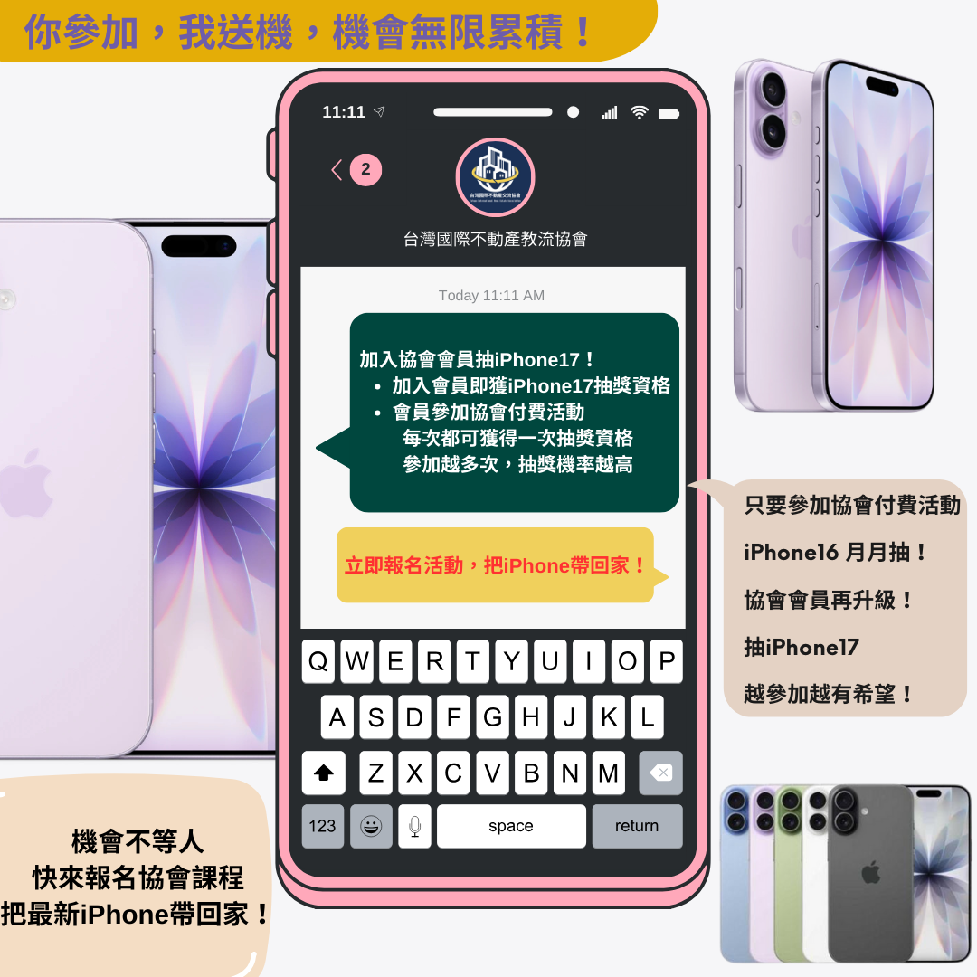 「協會10月特別活動付費課程熱烈報名中|每參加一次抽一次iPhone,機會無限累積!」