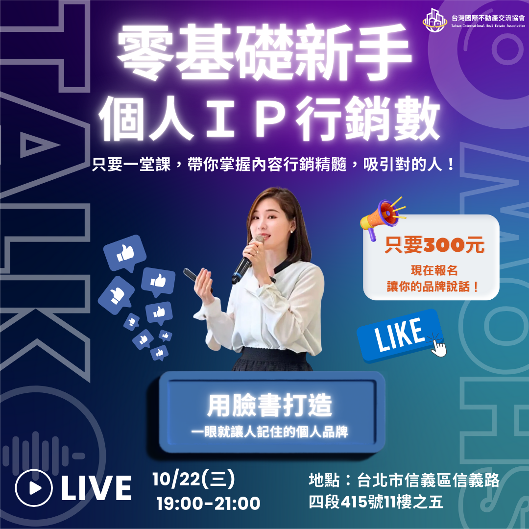 限時優惠只要 300 元,即可現場學習個人品牌吸粉心法,讓你的品牌開始說話!
