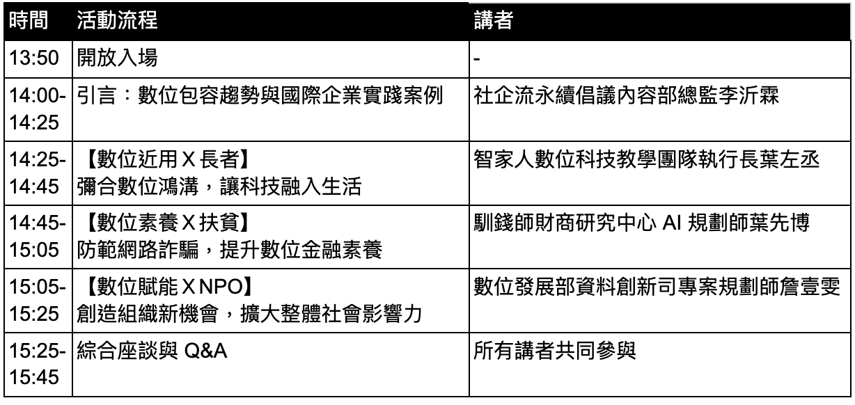 - 賦能組織:協助公益組織透過數位工具,將服務效益最佳化、擴大社會影響力