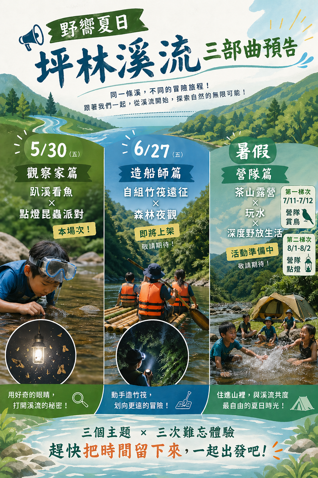 【📣 野嚮夏日坪林溪流三部曲預告】