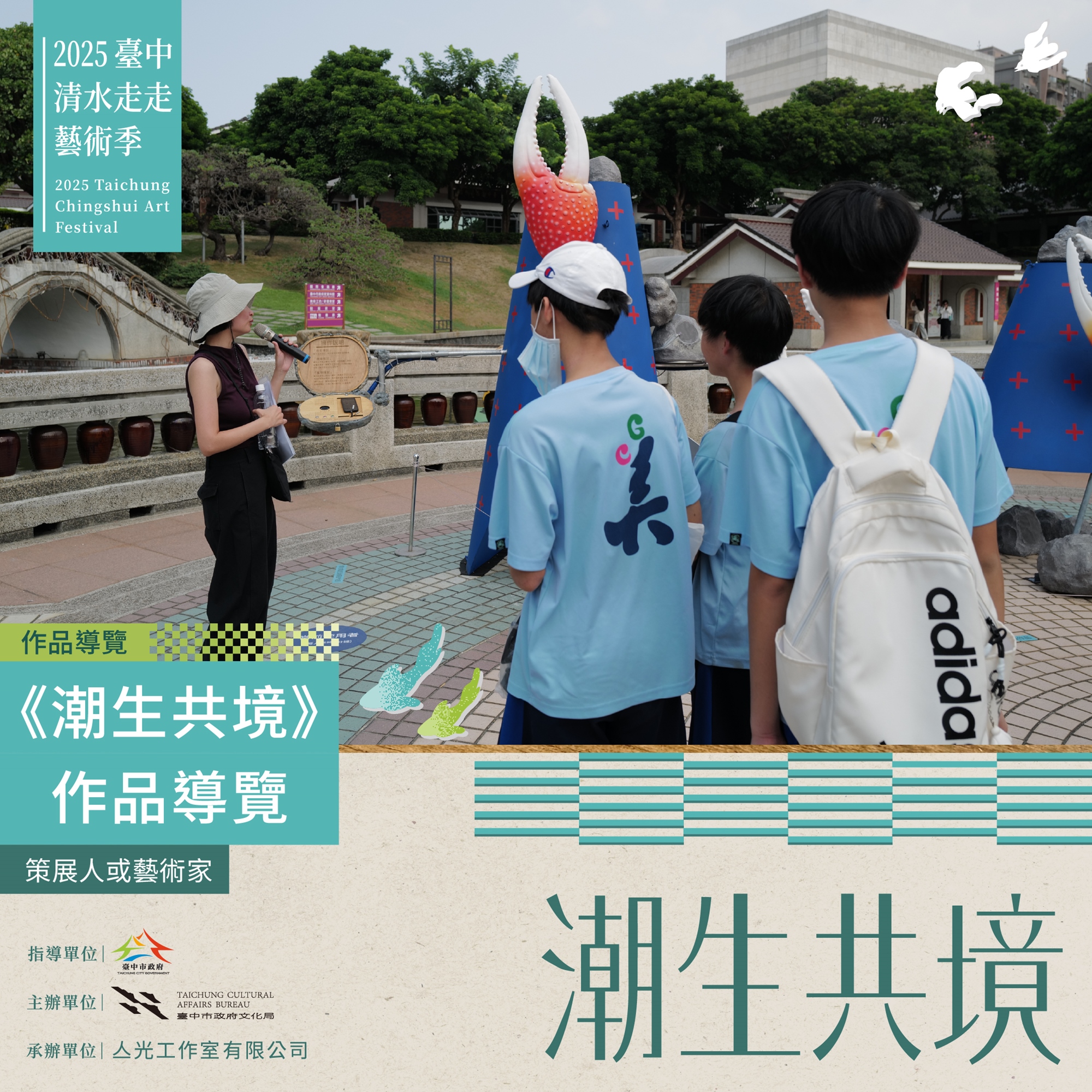 想更了解《潮生共境》的作品嗎?這場導覽由策展人親自帶你走進展覽現場,邊走邊聊創作背後的故事。你會聽到作品的靈感來源、創作過程中使用的材質,以及它們和清水在地環境的連結。
