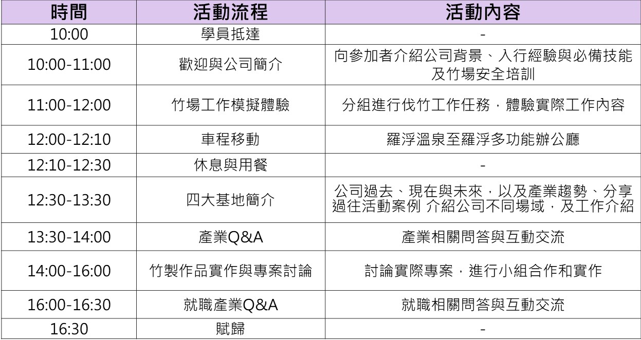 - 活動皆全程免費,並提供餐食、保險及接駁。