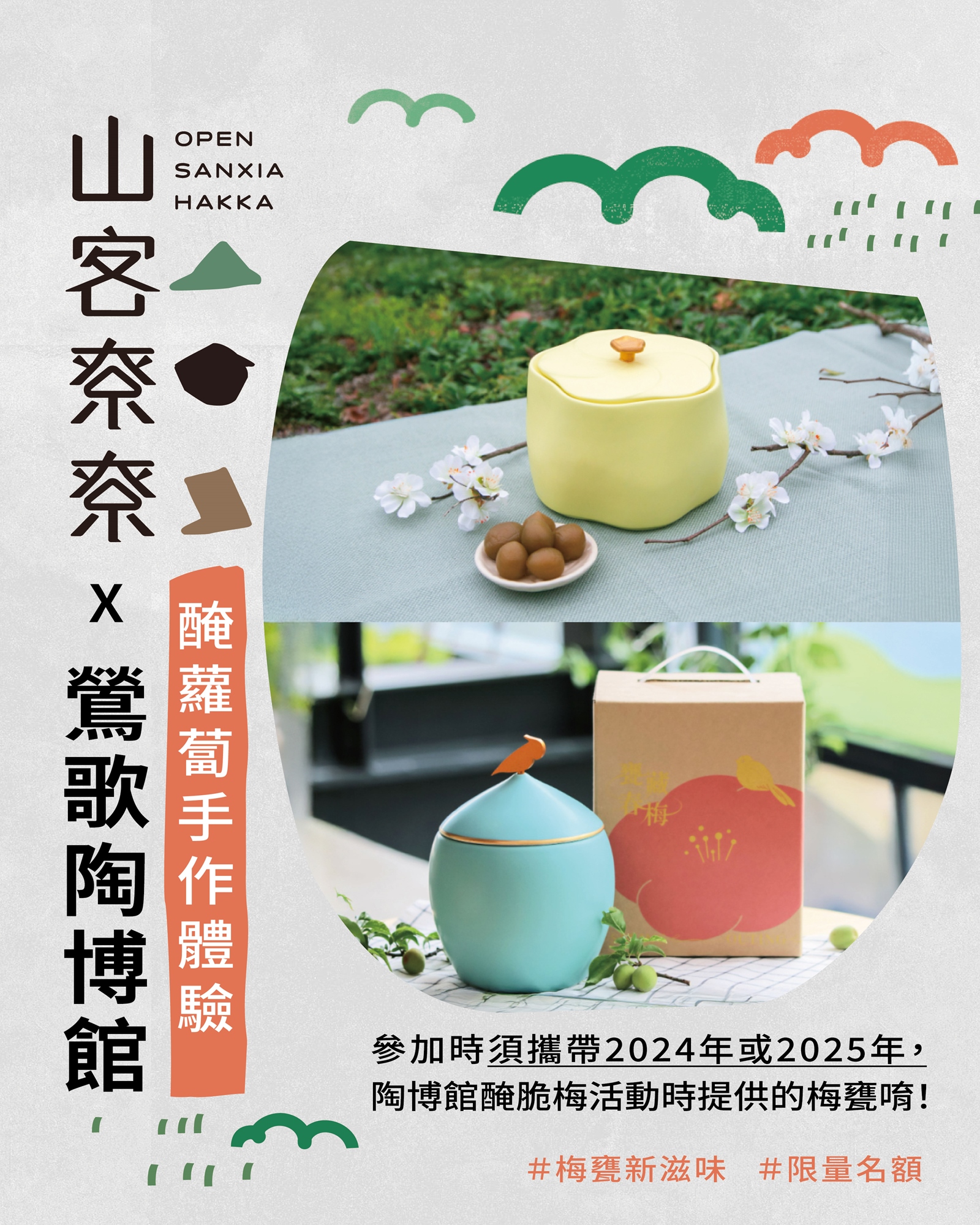 對象:限曾參加鶯歌陶博館於 2024 或 2025 年舉辦的醃脆梅活動,並持有該年份活動提供的梅甕,本次限量開放專屬報名優惠~