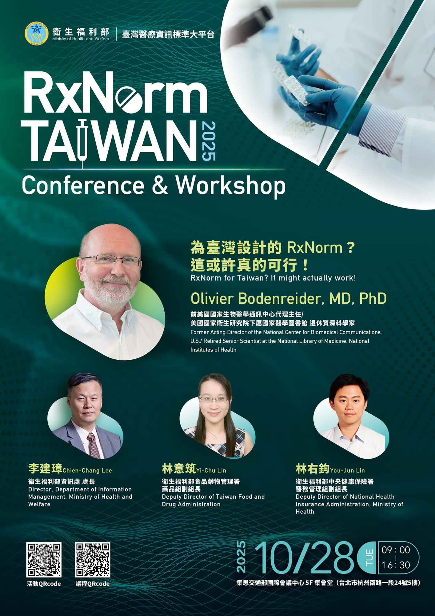 本次活動邀請國際講者,分享全球藥物語彙標準的推動經驗與最新趨勢。並由國內政策推動者與醫學中心實作團隊,介紹RxNorm在臺灣的應用策略與發展成果。