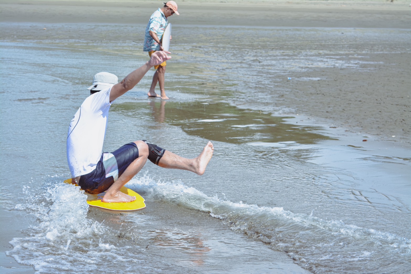 沙板(SKIMBOARDS)是一項既安全,有趣又緊張刺激的運動。在國外早已風行多年。你可以把他想像成衝浪+滑板的結合,但激起了更多的水花與歡樂!