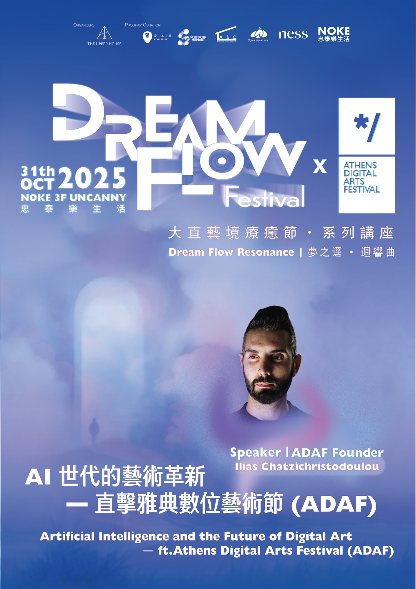 Ilias 同時身兼策展人與文化創新者,長年活躍於歐洲文化機構與藝術教育領域。他將以「AI世代的藝術革新」為題,深入探討生成式人工智慧、感知科技與數位文化如何共同改寫當代藝術的語言與形式。
