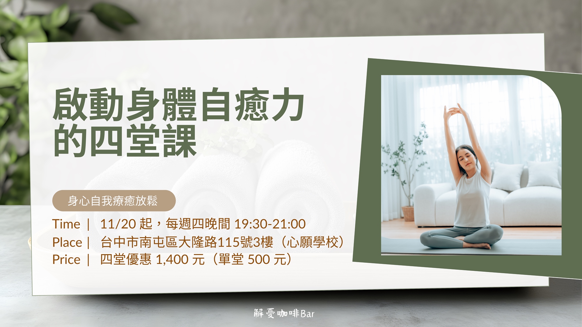 身體的疼痛點不是困擾我們自己,而是有機會能夠親密過往隱藏在體內的深層情緒。頭腦,限制我們的想像與思考,或許你該聽聽身體最神奇奧妙的自然機制,想要給我們什麼訊息呢?