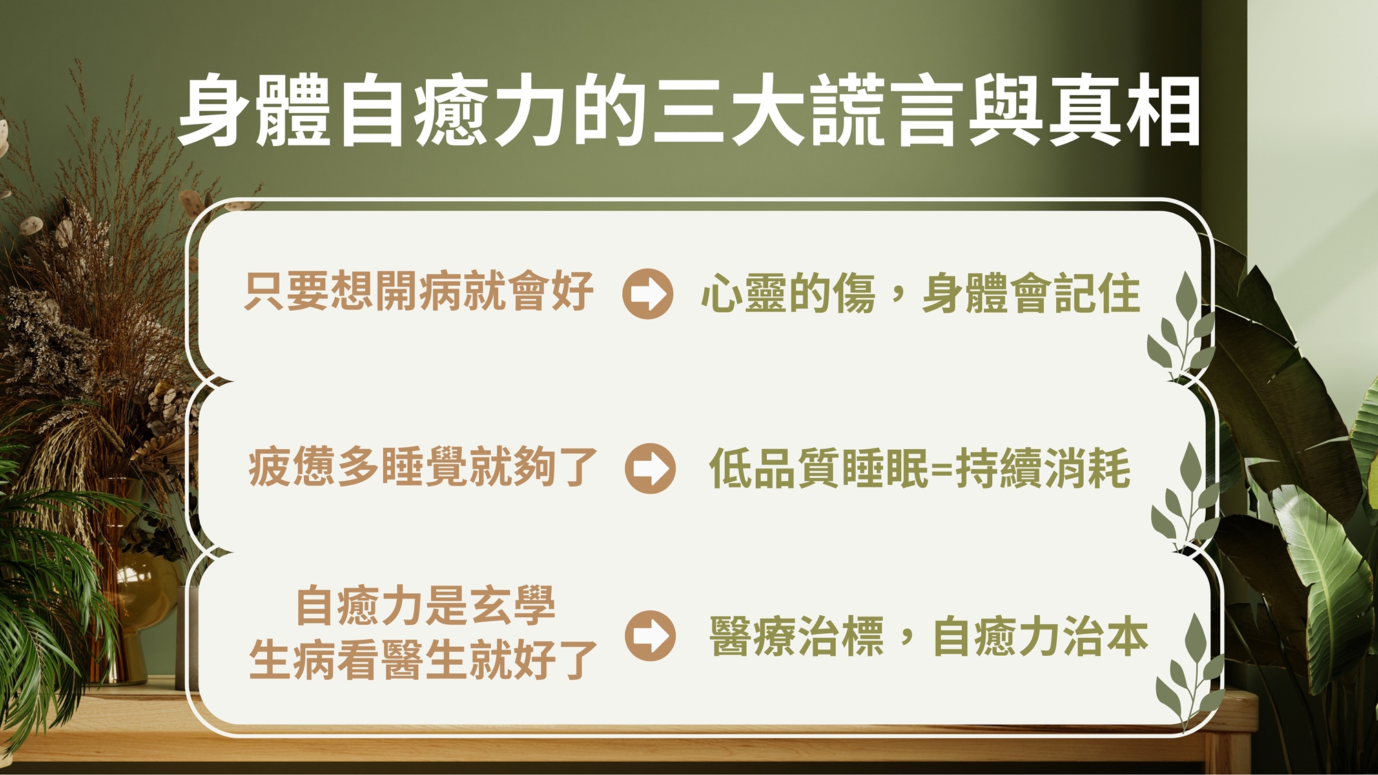 ❌ 迷思三: 「自癒力是玄學,生病看醫生就好了。」