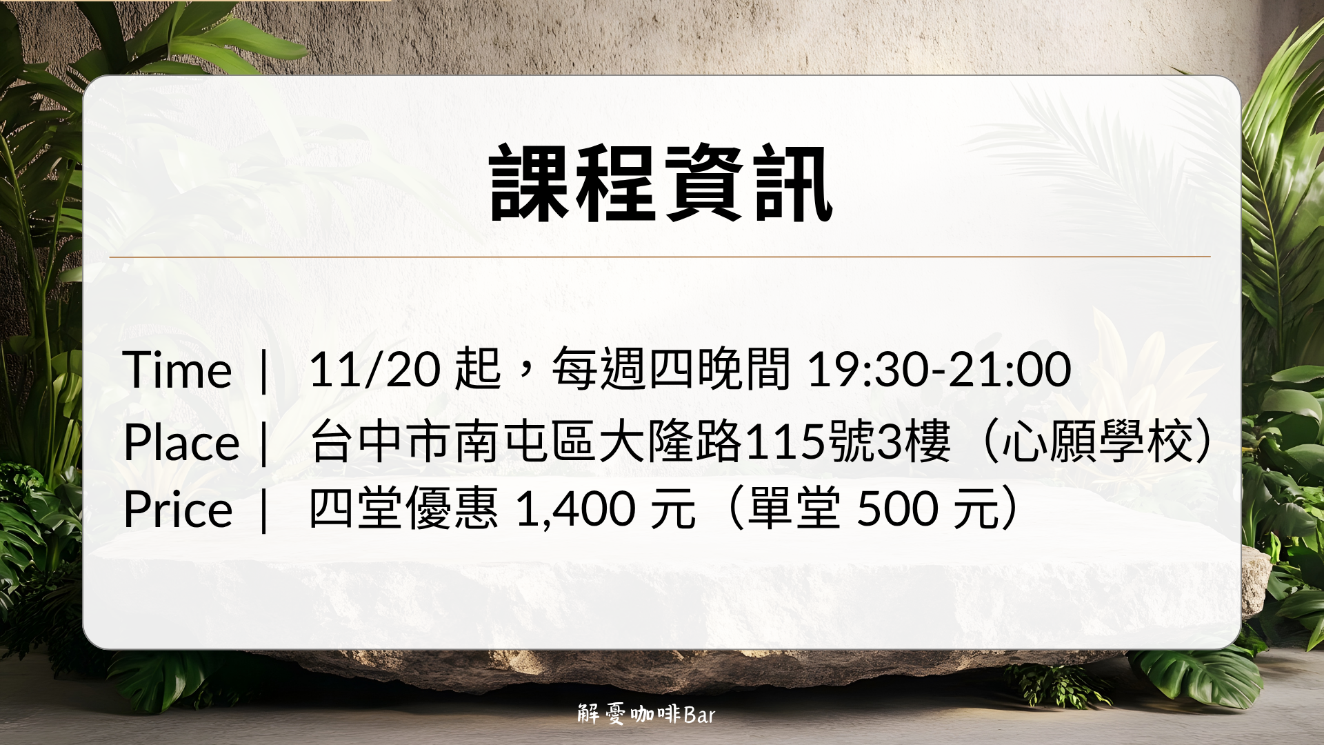 費用 四堂優惠 1,400 元(單堂 500 元)