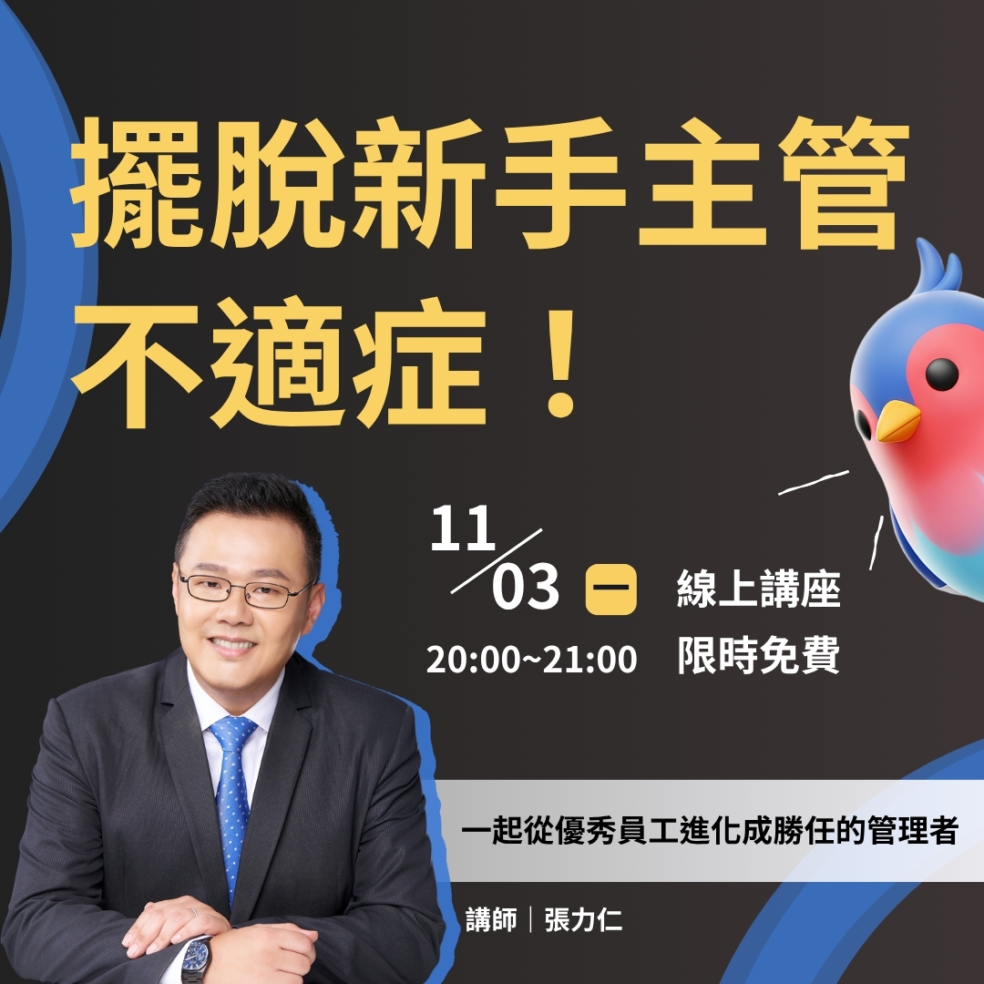 升任主管後,如何擺脫不適感?這堂講座帶你掌握管事、理人、帶出績效的關鍵!
