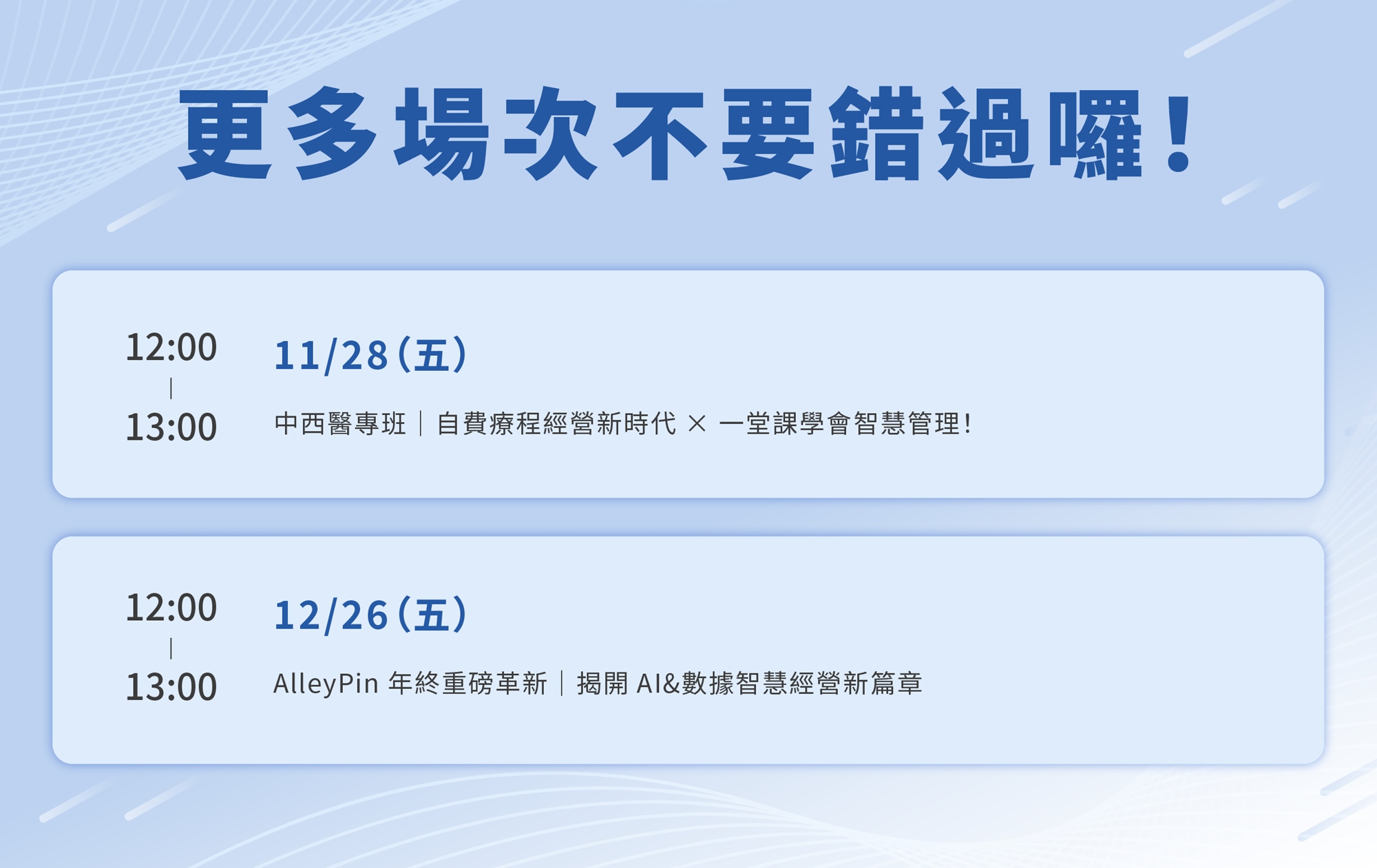 2. 尚未成為 AlleyPin 客戶: 歡迎加入我們的 LINE 官方帳號 留下您的診所、區域、姓名/職稱、聯絡電話後,會有專人與您聯繫!