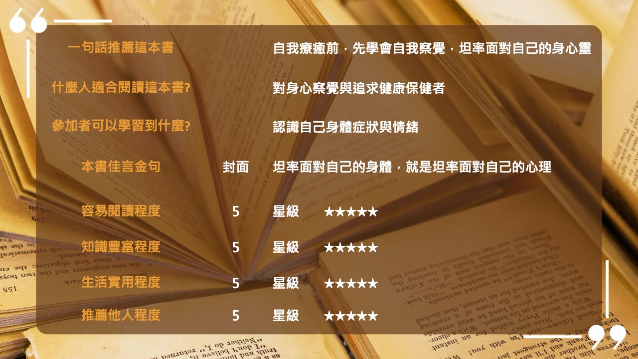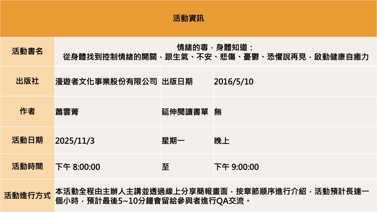 【BookBook預約線上讀書會】情緒的毒,身體知道: 從身體找到控制情緒的 開關,跟生氣、不安、悲傷、憂鬱、恐懼說再見,啟動健康自癒力