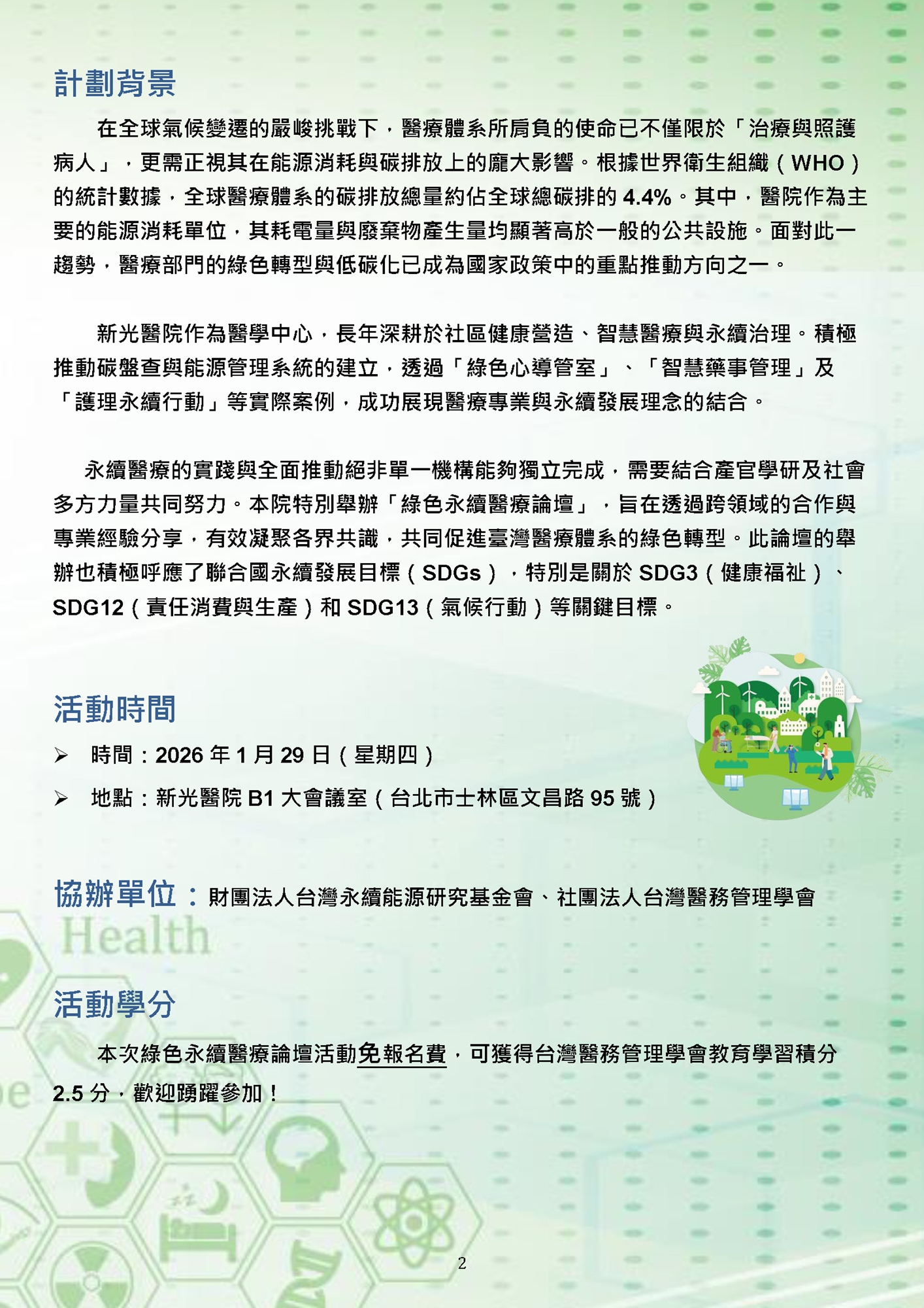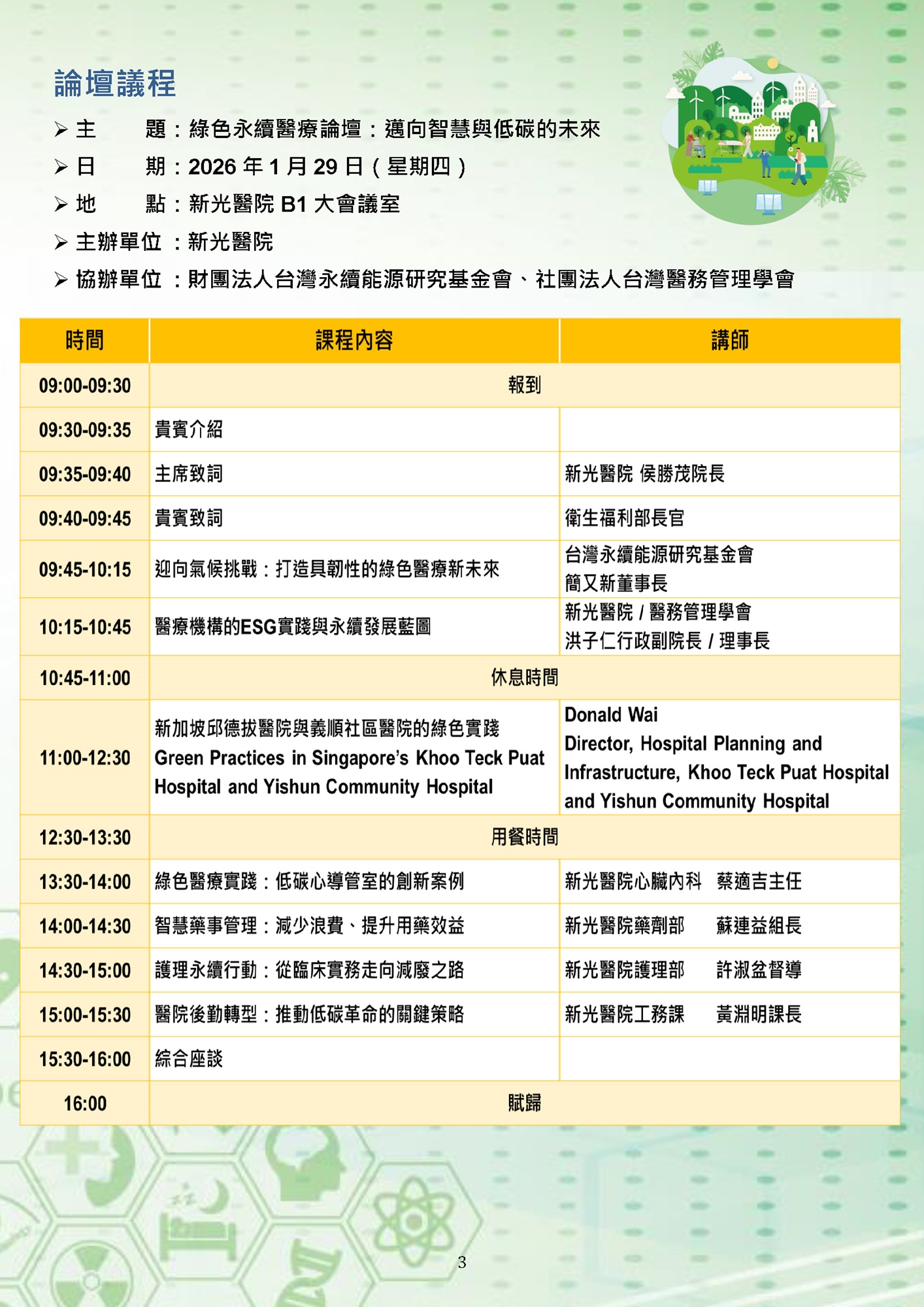 綠色永續醫療論壇:邁向智慧與低碳的未來