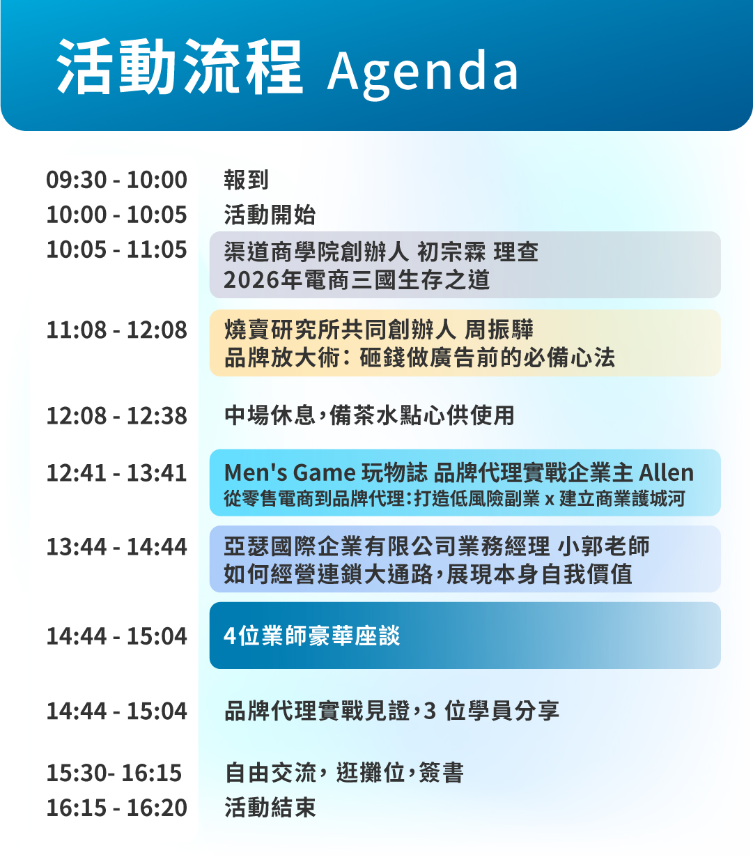 - 主題: 頂尖思維 x 品牌代理:4大商模引擎,4位業師的變現藍圖!