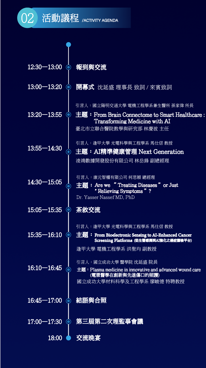 研討會後誠摯邀請講者與會員共襄盛舉,參與 SmartHealth Next 交流晚宴 ——