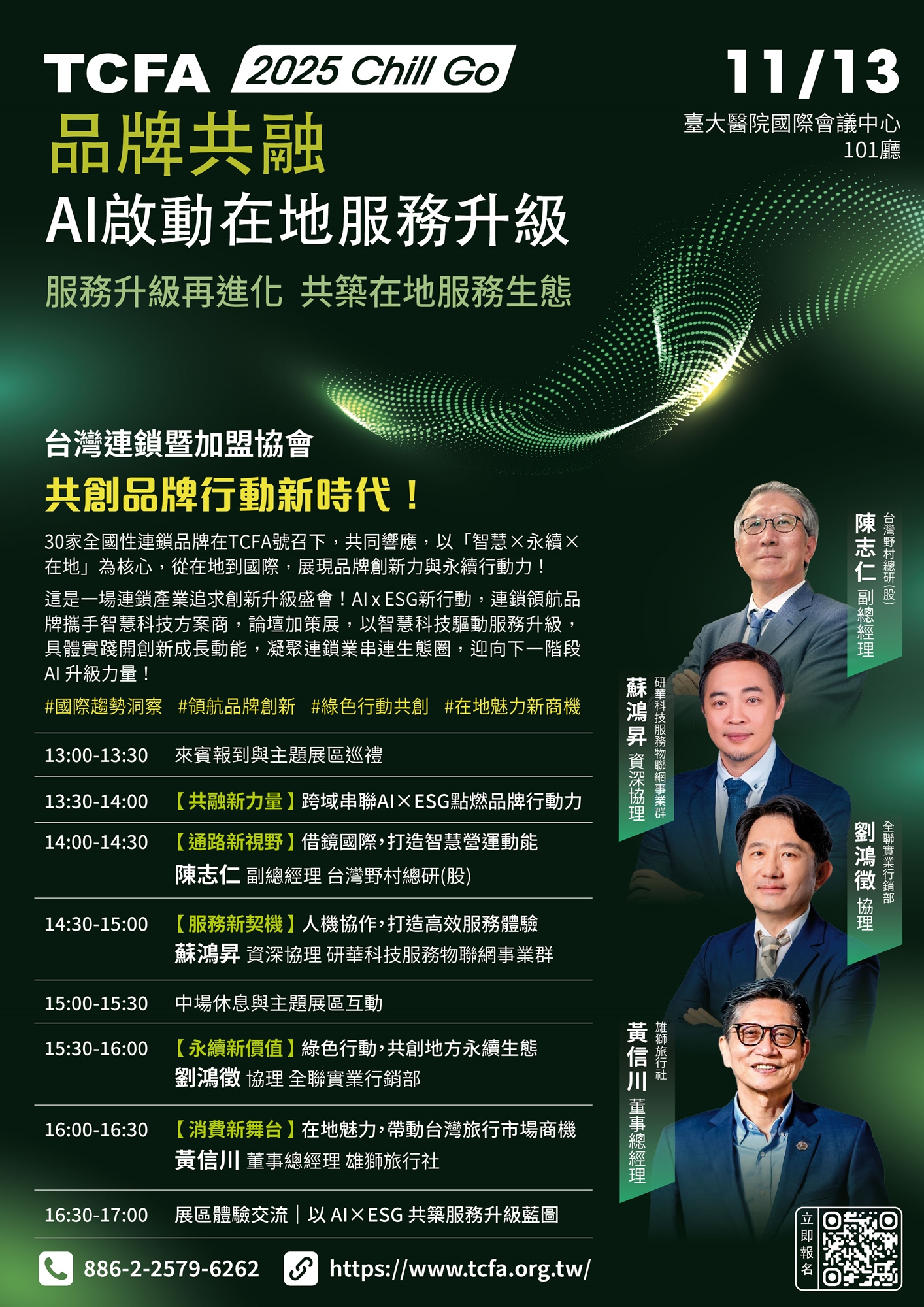 在「缺工挑戰 × 數位變革 × 永續浪潮」的三重衝擊下,台灣連鎖產業正站上轉型關鍵點。由 台灣連鎖暨加盟協會(TCFA) 主辦的「2025 CHILL GO 品牌共融論壇暨展覽」,將於 11月13日(四)下午於台大國際會議中心登場,以「共融共好」為號召,匯聚產官學界與全台指標品牌,共同探索如何以 AI 驅動效率創新、以 ESG 落實永續價值,開啟服務業升級的新篇章。