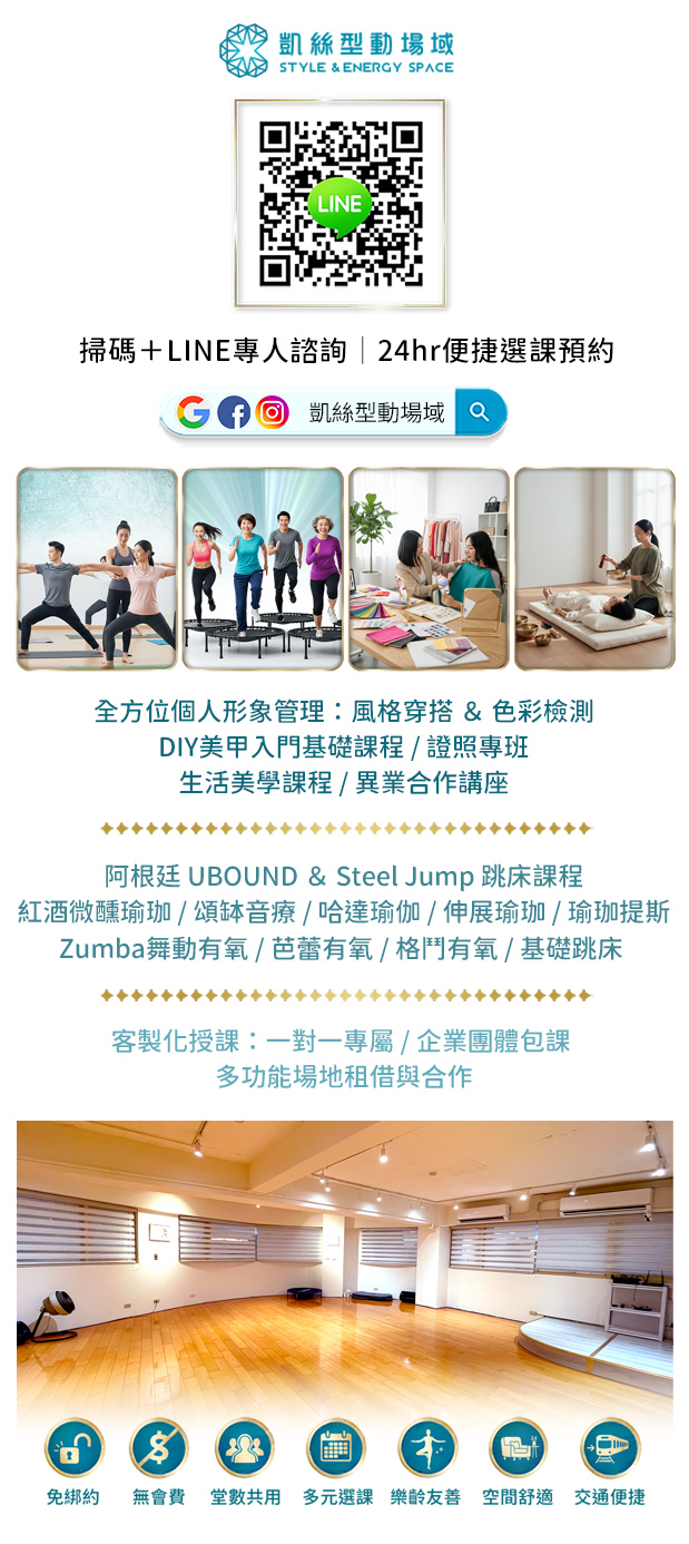 提供個人形象/美學/生活/有氧/瑜珈等等豐富課程內容,