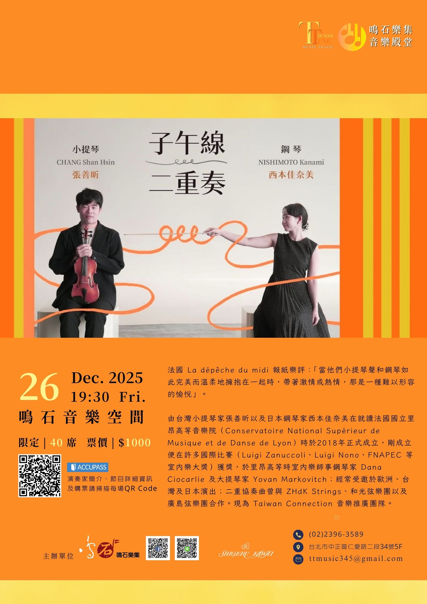 由台灣小提琴家張善昕以及日本鋼琴家西本佳奈美在就讀法國國立里昂高等音樂院(Conservatoire National Supérieur de Musique et de Danse de Lyon)時於2018年正式成立,剛成立便在許多國際比賽(Luigi Zanuccoli、Luigi Nono、FNAPEC 等室內樂大獎)獲獎,於里昂高等時室內樂師事鋼琴家 Dana Ciocarlie 及大提琴家 Yovan Markovitch;經常受邀於歐洲、台灣及日本演出;二重協奏曲曾與 ZHdK Strings、和光弦樂團以及廣島弦樂團合作。現為 Taiwan Connection 音樂推廣團隊。