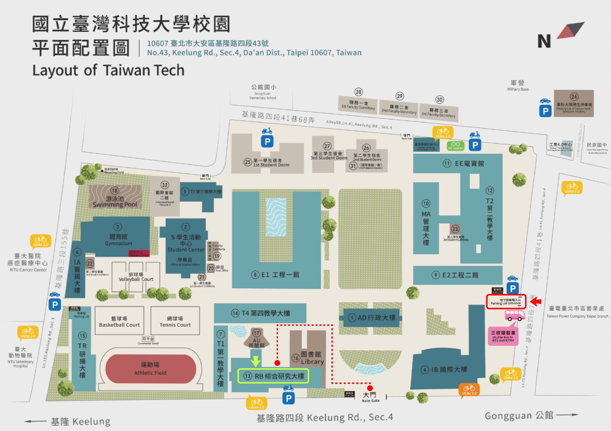 - 請注意:看到圖書館後,請繼續往前走,經過圖書館後再左轉,即可抵達綜合研究大樓,屆時亦有工作人員現場指引。