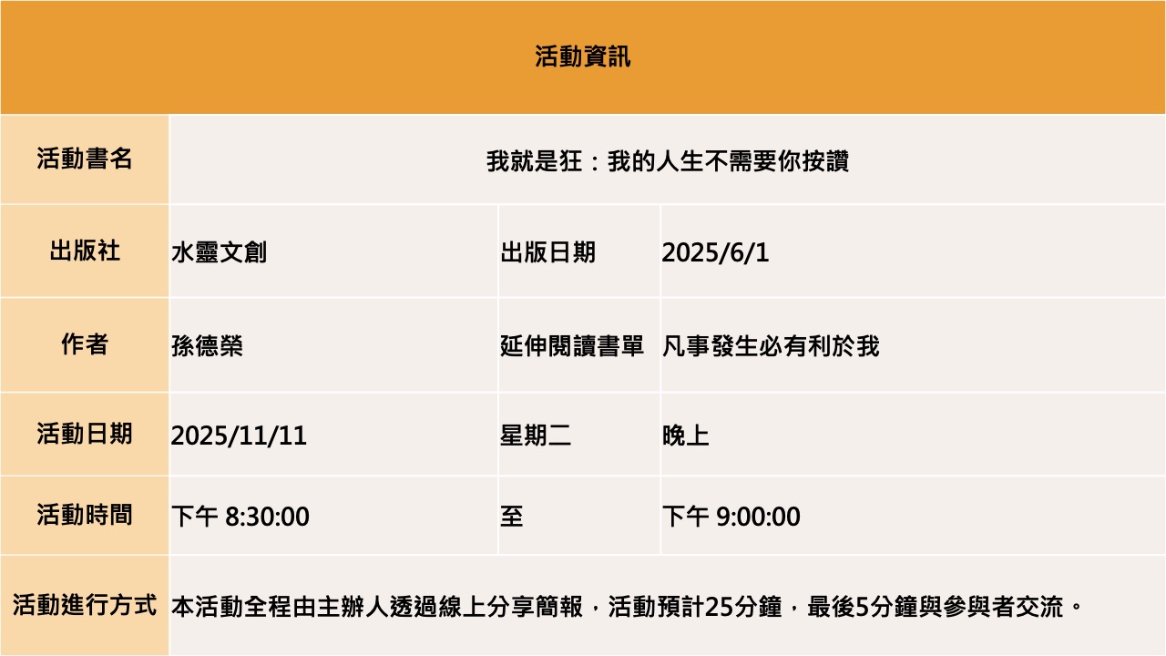 【BookBook預約線上讀書會】 我就是狂:我的人生不需要你按讚