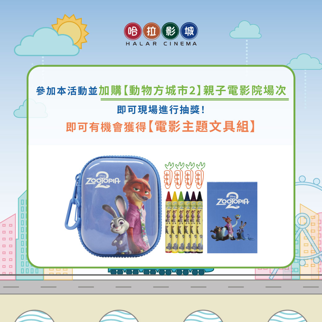 加購《動物方城市2》親子電影院場次即可參加電影主題文具組抽獎喔