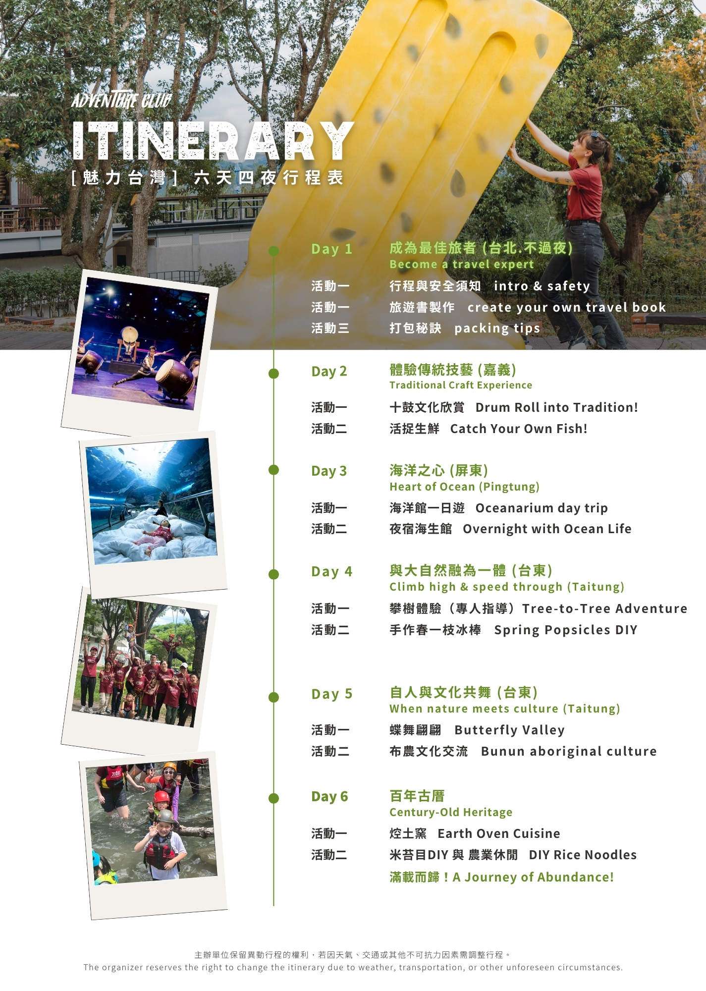 活動日期 (PS. 第一天為行前訓練課程及打包說明,因此不過夜)