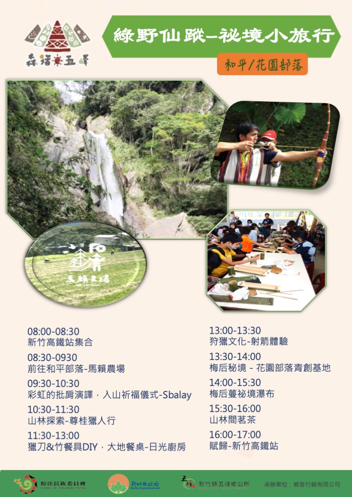 - 參加辦法:需報名參加一場次五峰鄉全額免費一日遊遊程(請擇一場次),以智慧型手機拍攝五峰鄉影片上傳IG、FB、YT等平台、並標註五峰鄉公所。(請詳填Google表單)。