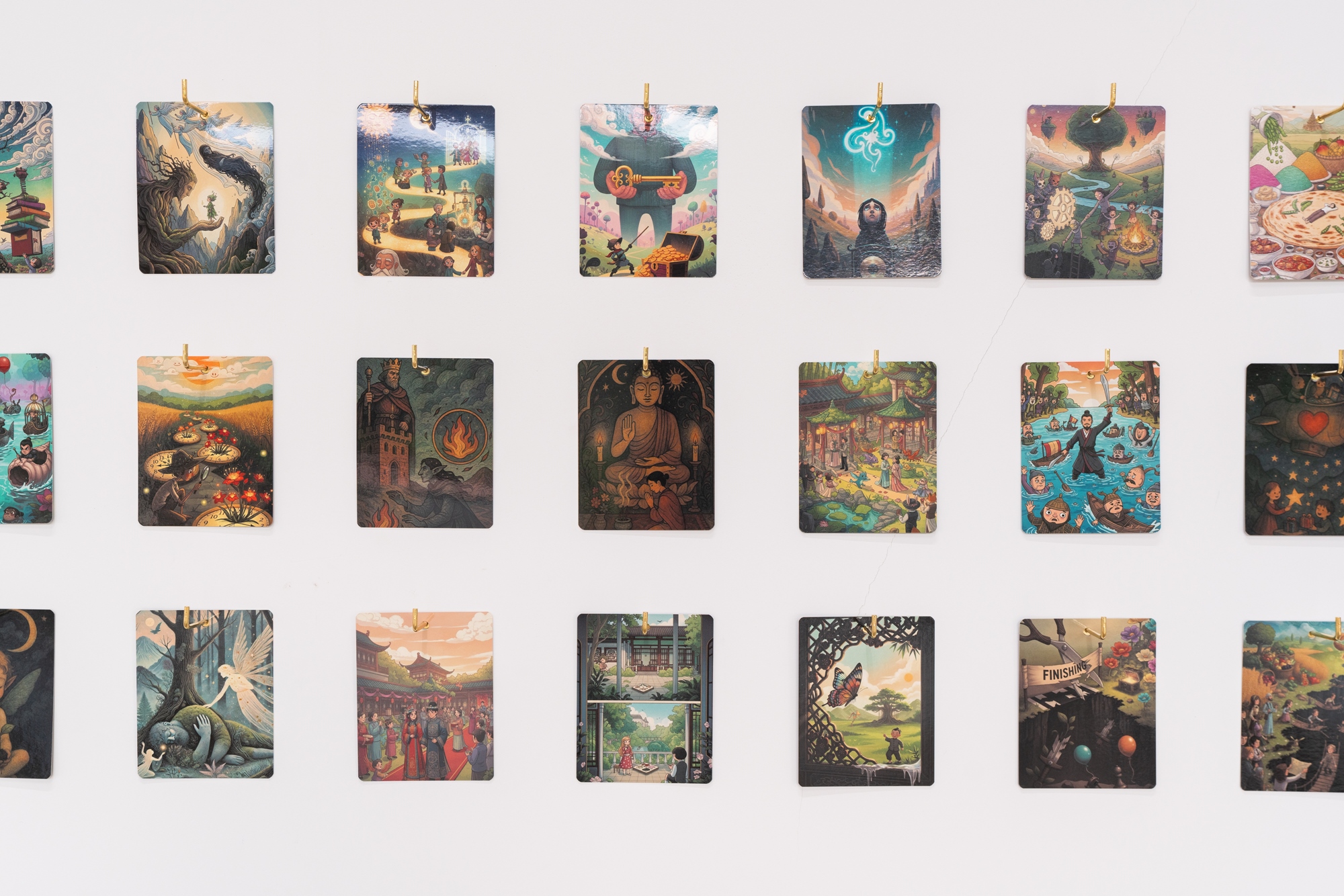 邀請觀眾一起走進「拇指世代」展覽,由參與館校計畫的埔墘國小學生親自導覽,分享他們在藝術家帶領下創作出的故事與作品。透過孩子的視角,重新發現生活裡的感受、記憶與地方風景。導覽結束後,參與者將在「拇指世代」策展人帶領工作坊中,動手創作屬於自己的「故事」,運用展場中的故事牌卡以及經典桌遊「妙語說書人」牌卡的圖像與文字,激盪更多的靈感與情緒,體驗從觀看到參與創作的轉換過程。