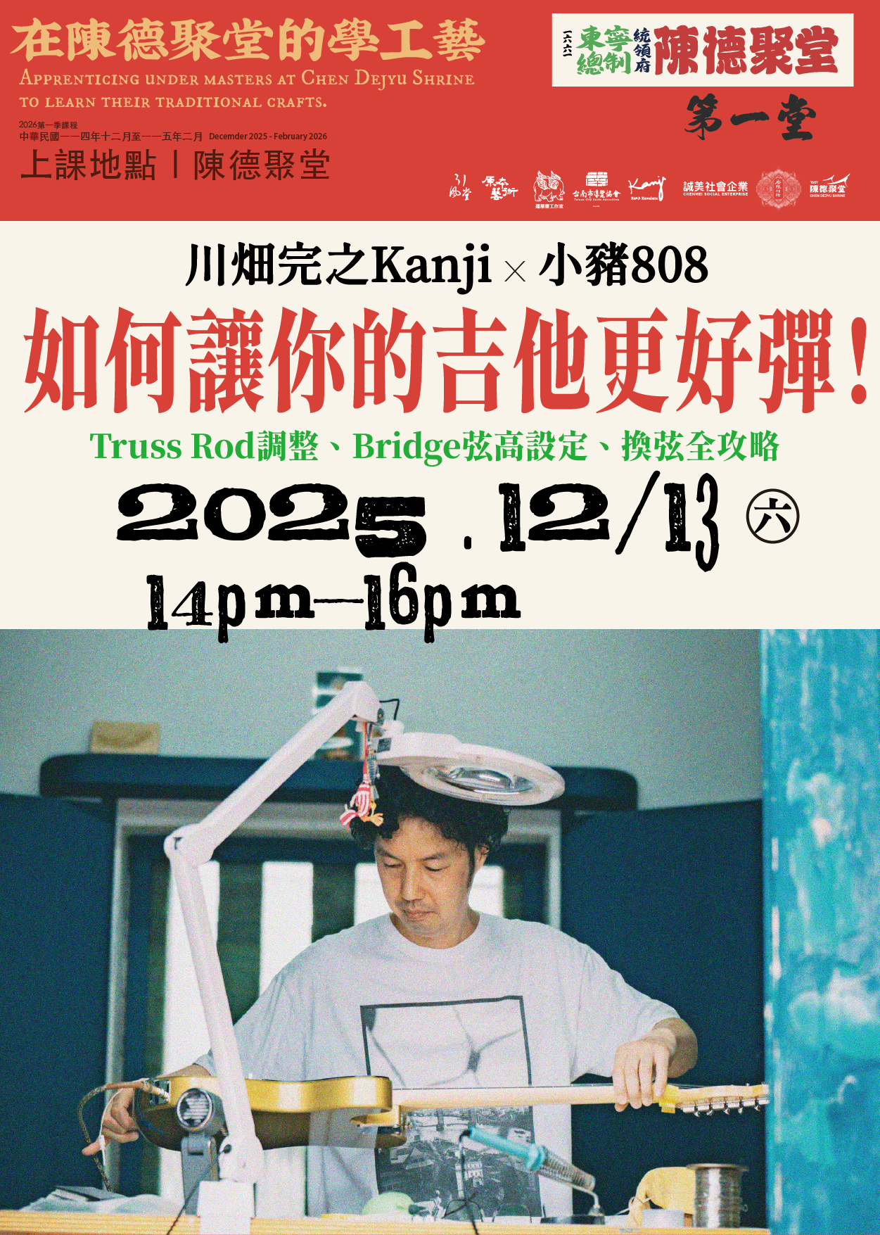 📌 課程講師|小豬808(吉他老師)、川畑完之Kanji(製琴老師)