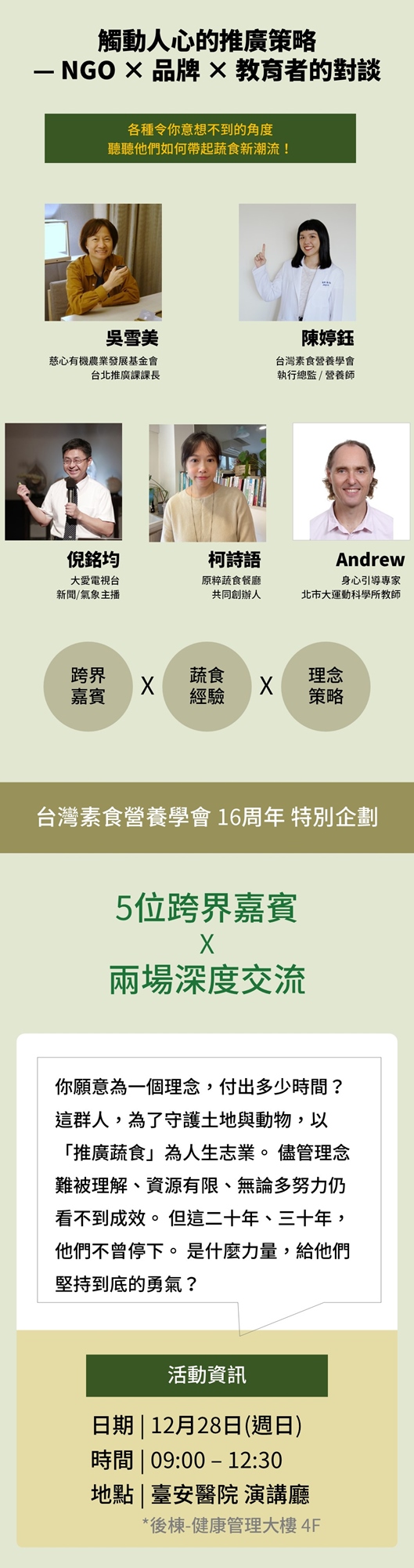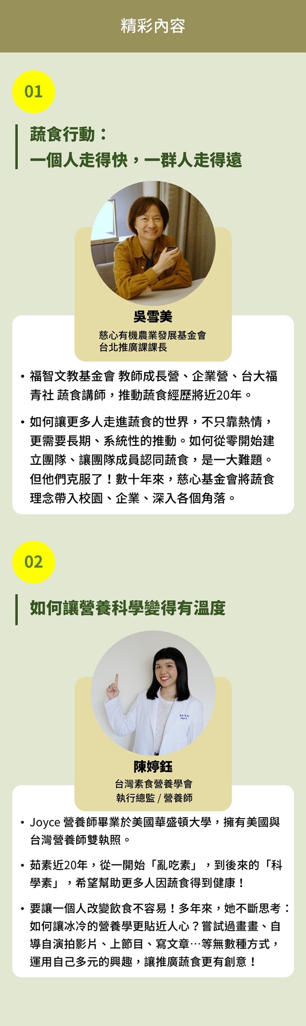 課程結束後,歡迎至B1餐廳享用蔬食午餐。