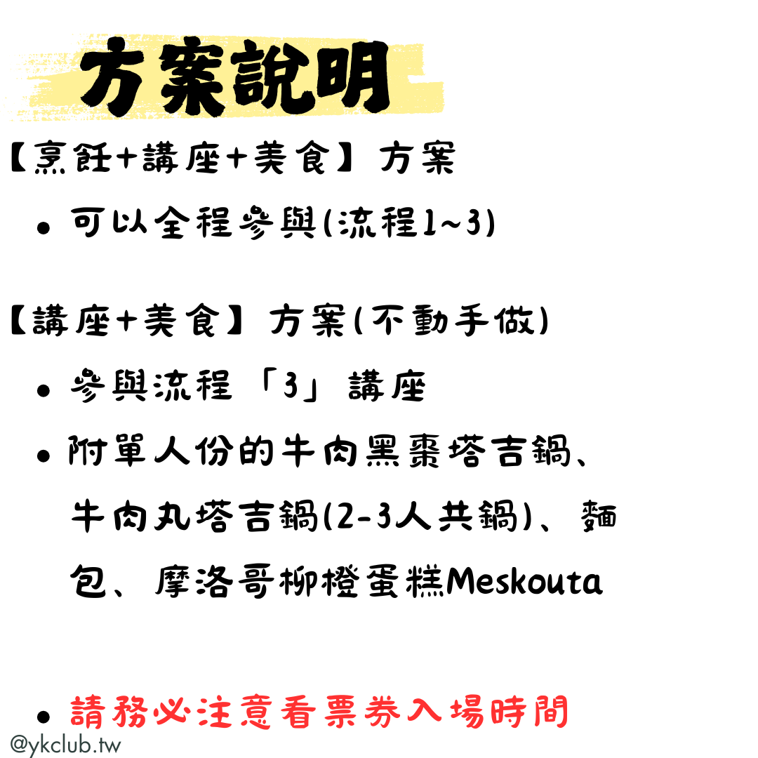 + 摩洛哥香料醃檸檬雞塔吉鍋(由講師預先準備,共鍋享用) 12月限定!