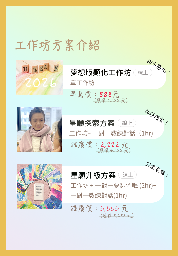 2)活動前需準備夢想相關照片電子檔(報名後官方LINE@會提供引導)