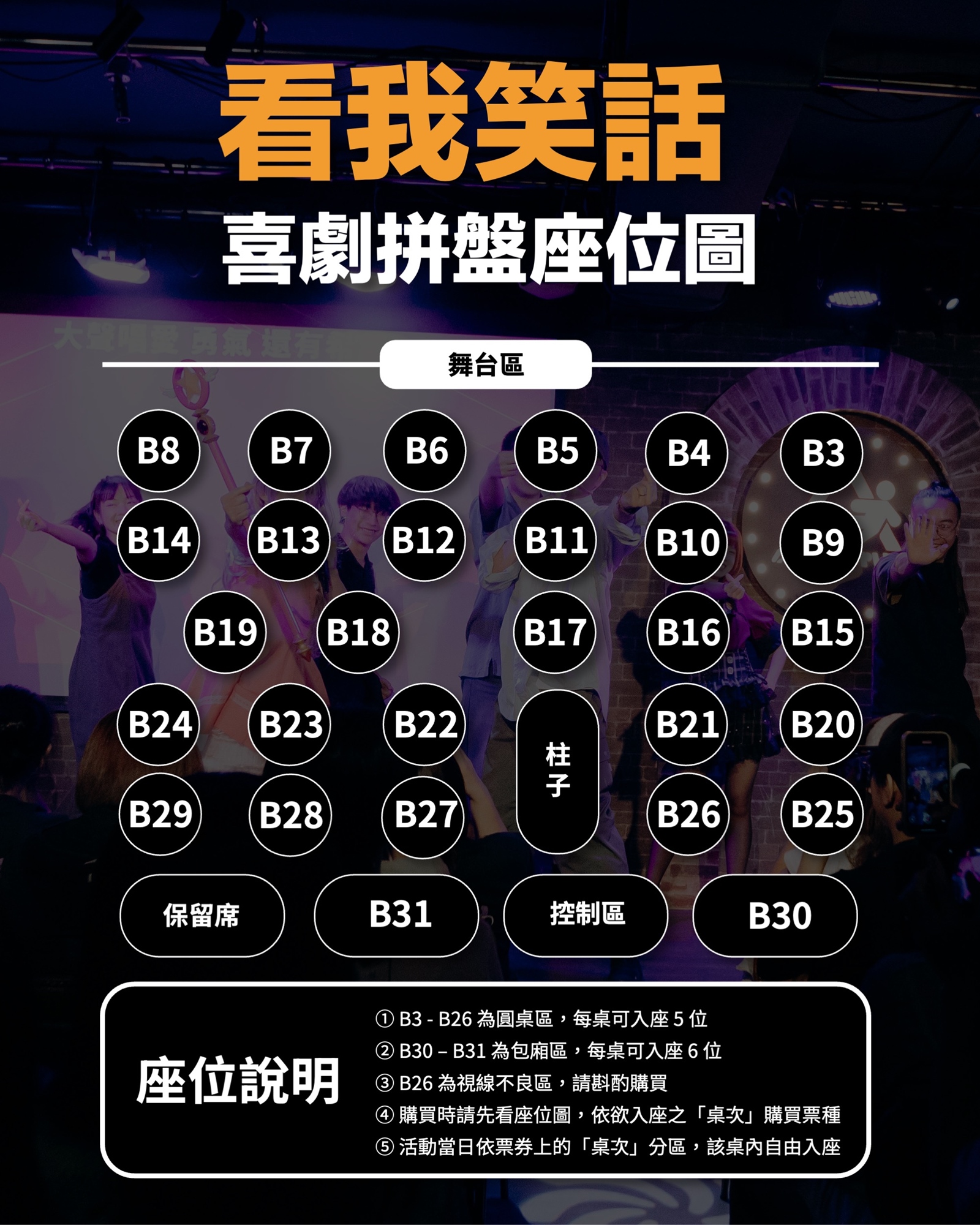 🔳 演出將同步進行錄影、拍照,在演出現場代表同意個人肖像權可供看我笑話團隊使用