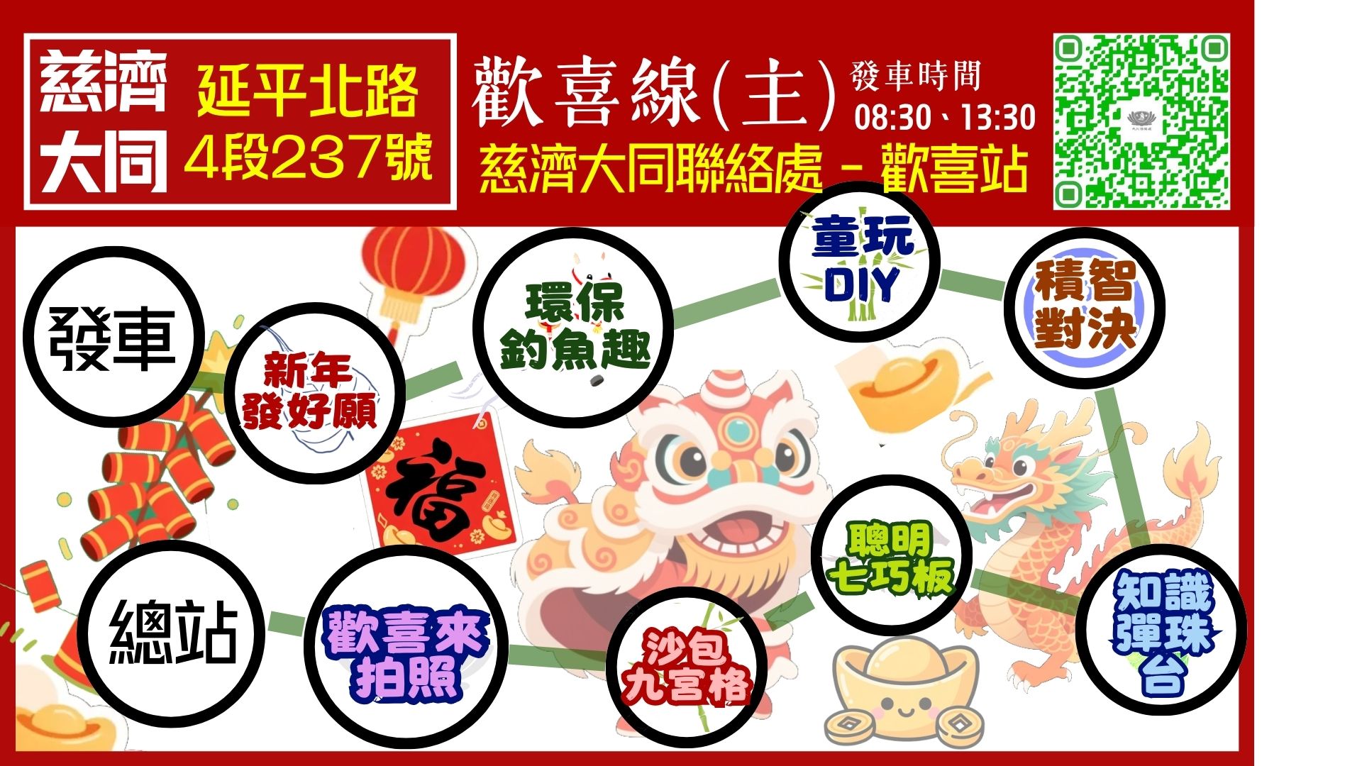 馬年紅包袋、活動紀念車票、吊飾、抽獎機會、單字春聯各1份。