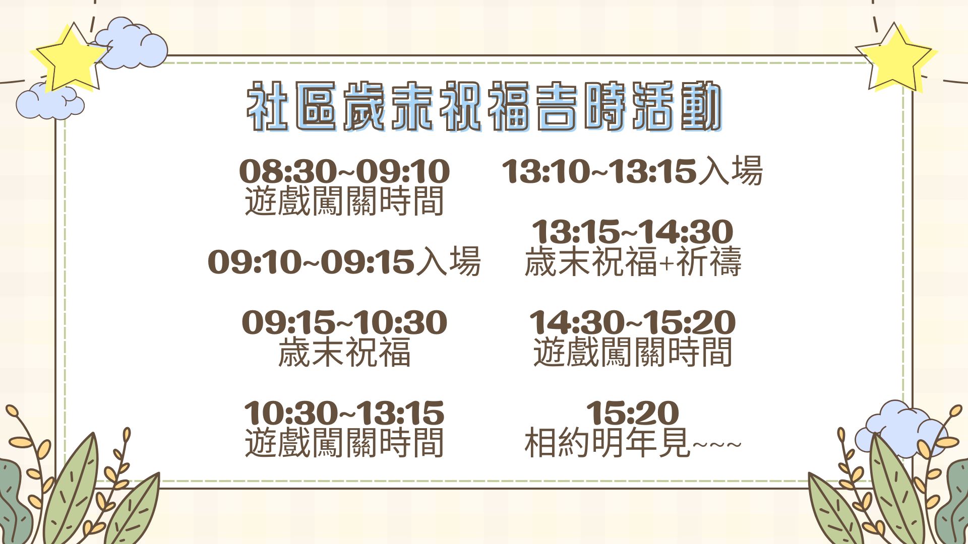 【主題二】歳末祝福+祈禱[二個時段 ]