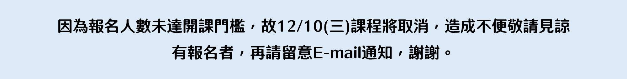 ※ 請於各場次 15 分鐘前報到完畢,以免延誤課程進度!