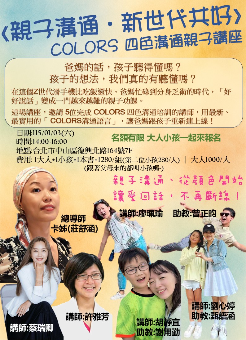 ✔ 講師都是爸媽! 經過 COLORS 四色溝通培訓,更貼近真實親子現場