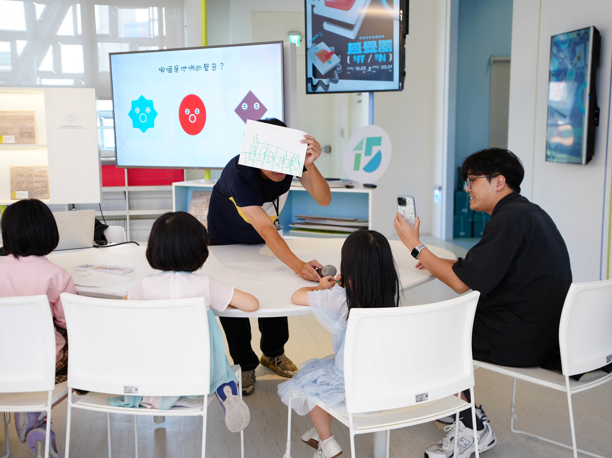 挑戰親子共同模仿各種情境與角色聲音,從幽默的變聲中,感受聲音特質與身份扮演之間的關聯。 - 聲音寫生