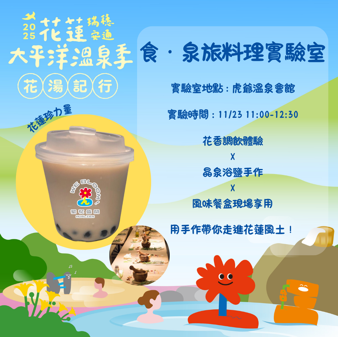 在花蓮的山風與泉霧之間,「食・泉旅料理實驗室」結合了風土料理、手作體驗與在地職人的故事,邀請你透過 調飲、香氣與料理,用五感重新認識花蓮。