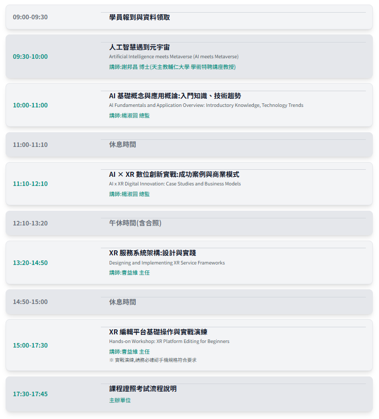 - 實作要求:須提交 AI 生成內容與 XR 平台整合案例。
