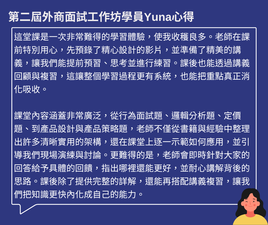 - 資深 PM:經驗豐富,但面試時總不確定自己的回答是否符合外商的深度和邏輯。