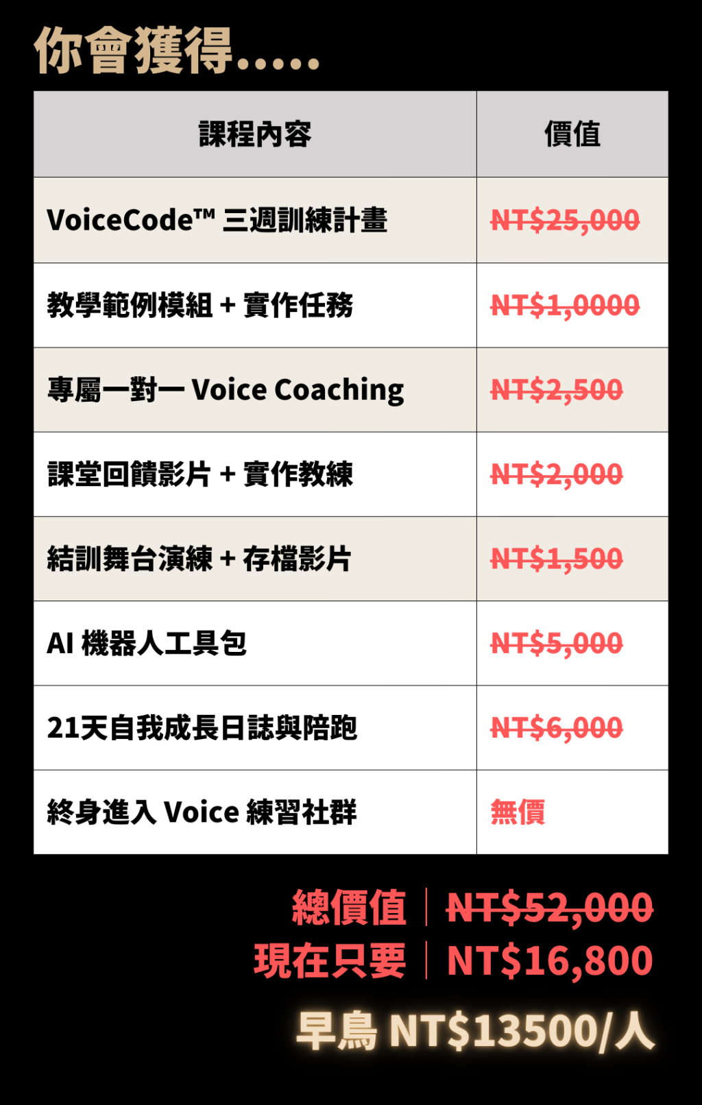 ✅ 30 分鐘個別教練心理轉化對話(價值 NT$2,500)