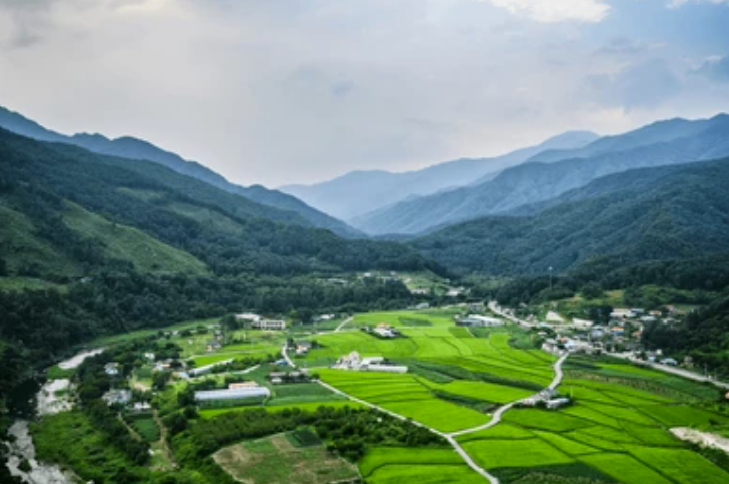 再越過河谷、稻田與村落,