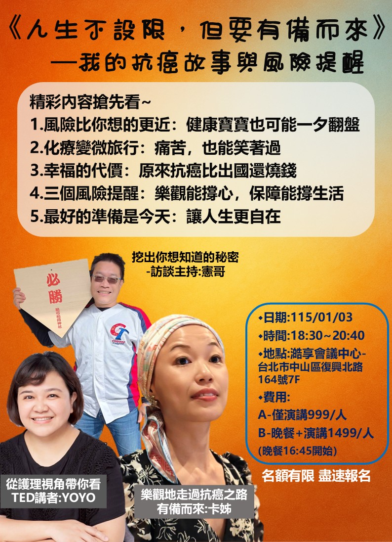 《人生不設限,但要有備而來》—我的抗癌故事與風險提醒