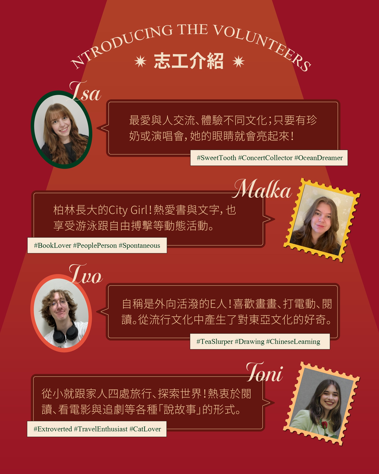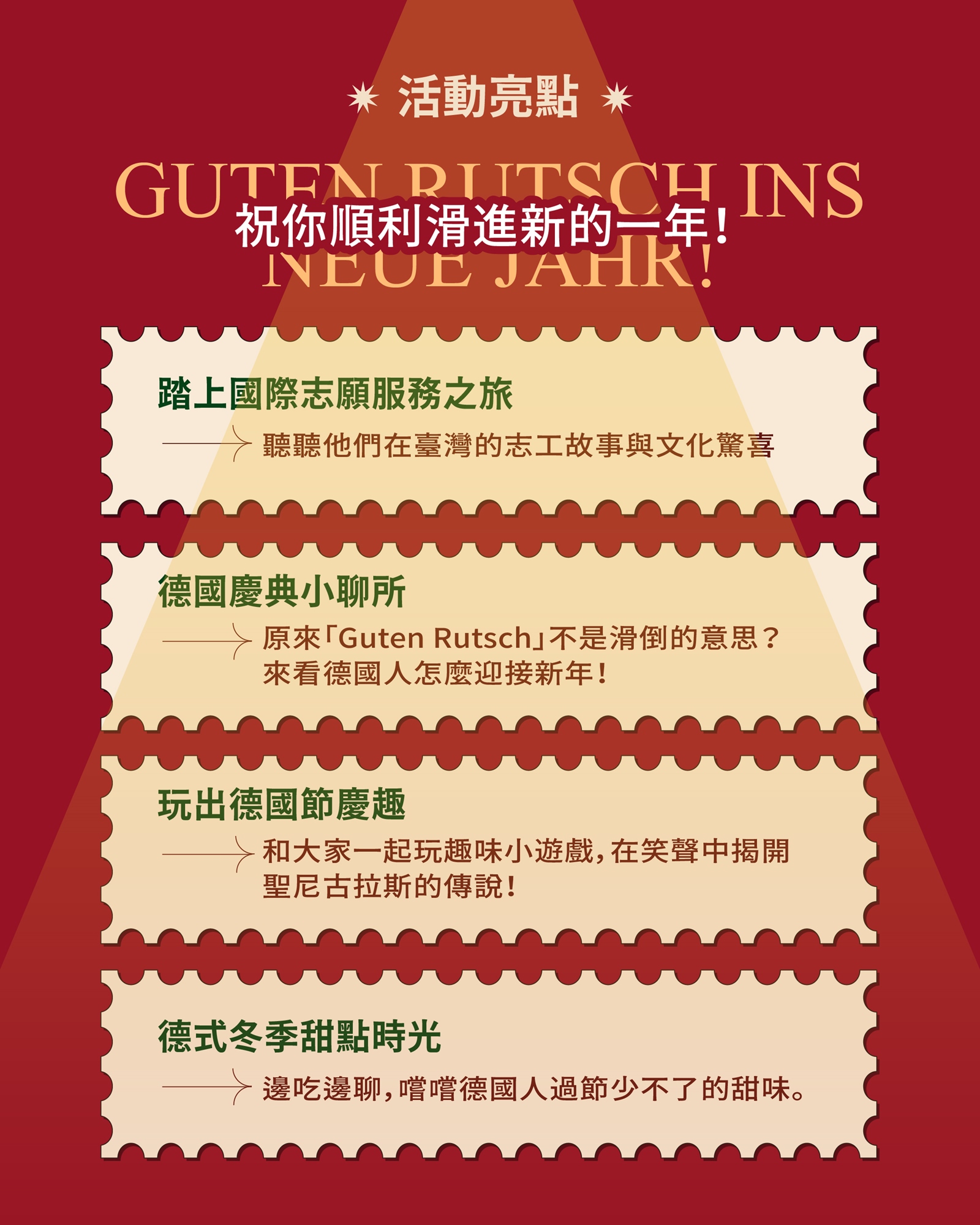 除了服務故事,四位志工也將帶領大家一起體驗德國年末節慶:
