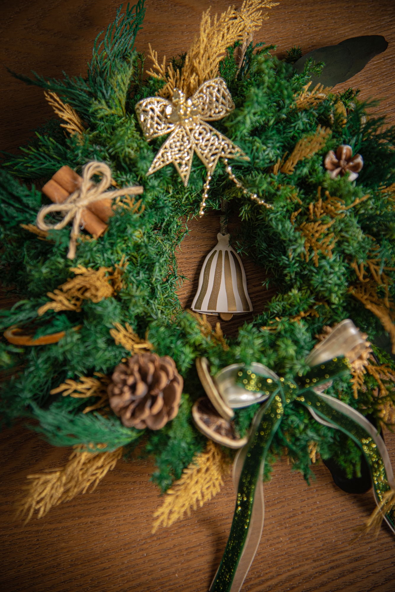 🎄作品大量使用原色棕色果實與乾燥香橙片,