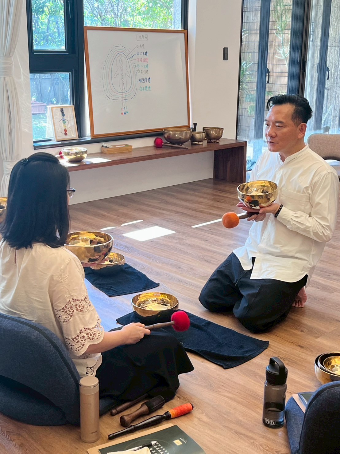 更將頌缽的教學融合科學、醫學理論知識與技巧的演練,得以被實踐、傳承。