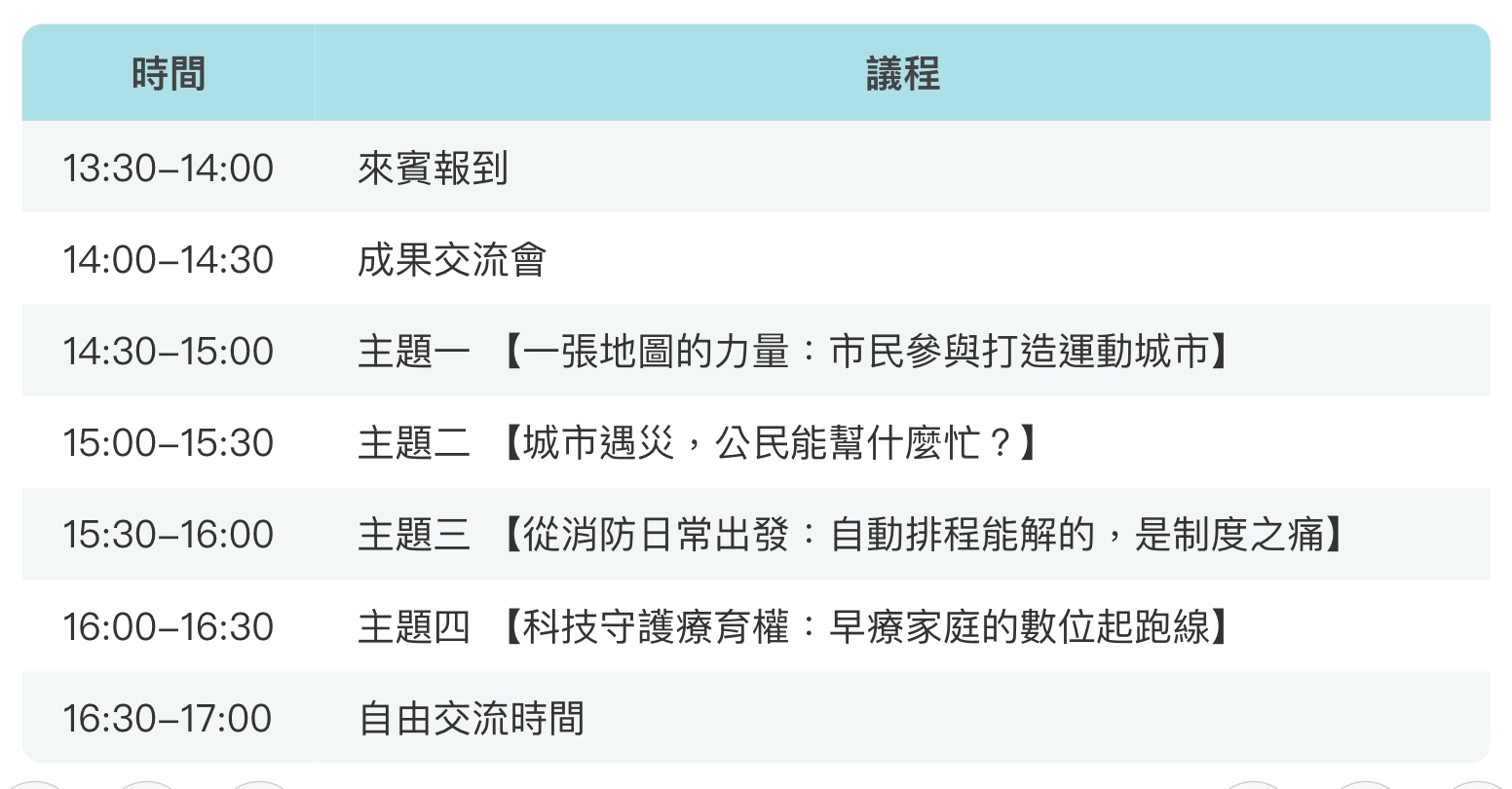- 活動資格:本活動為免費參加,限額開放,額滿即止。歡迎對「公民科技 × 地方治理 × 開源創新」有興趣的您一同參與!