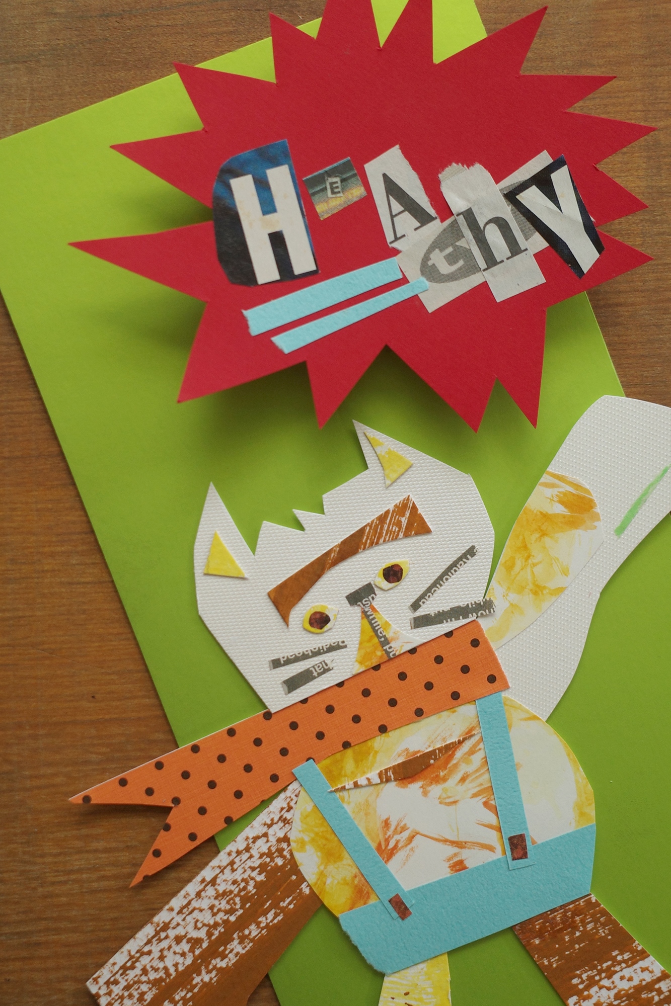 創作以直覺剪貼與簡單、有趣的視覺組合為主,常在人物、動物與日常景象中找到新的排列方式。