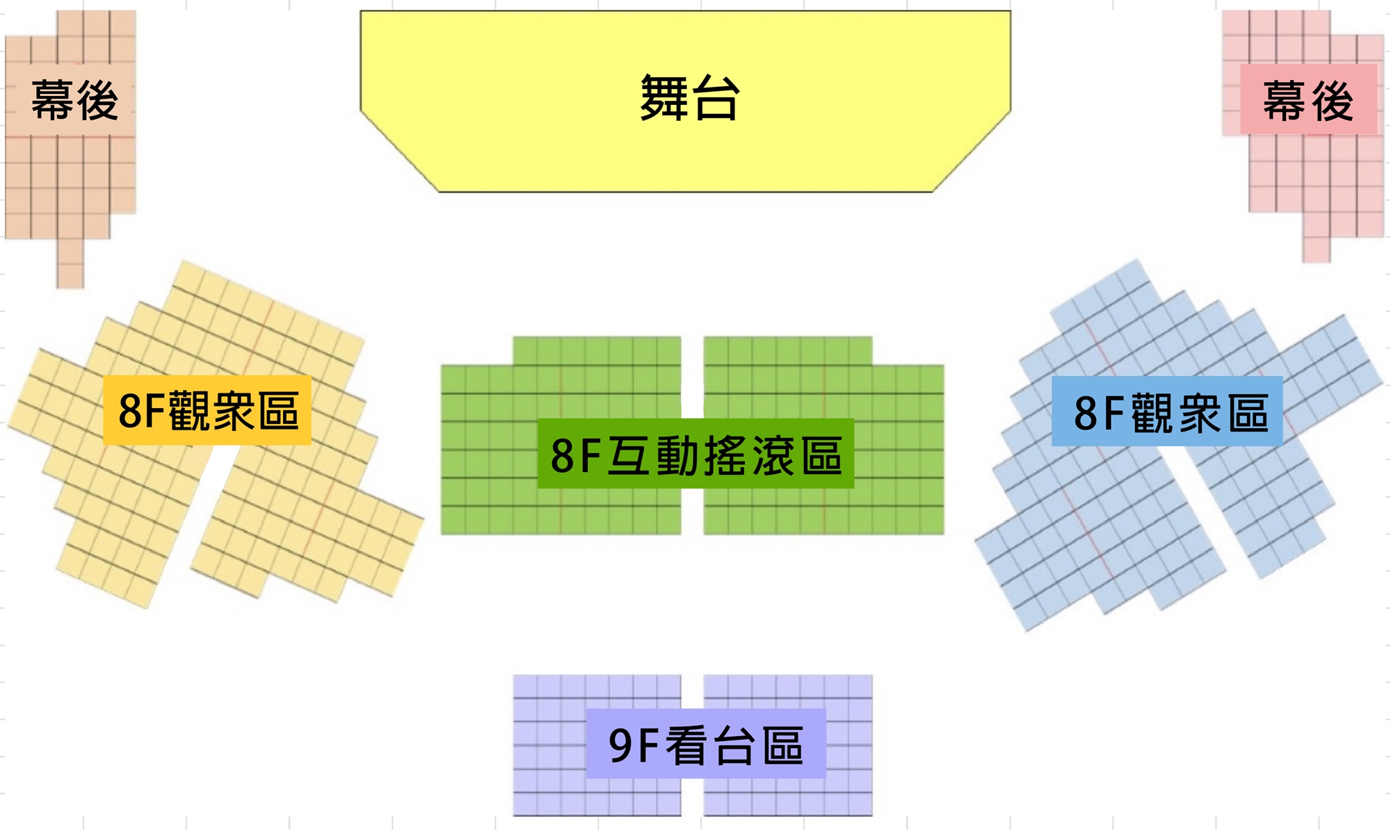 活動內容活動DM座位圖敬請一人一票,憑票入場帶領12歲以下孩童者,建議選擇9樓座位區注意事項為響應無紙化愛地球,以QR Code電子票券掃描報到。本活動為自由入座,按入場順序可優先入座「8F互動搖滾區」。本活動15:00開放入場,15:30準時開演,敬請把握入場時間。場內僅開放飲水。